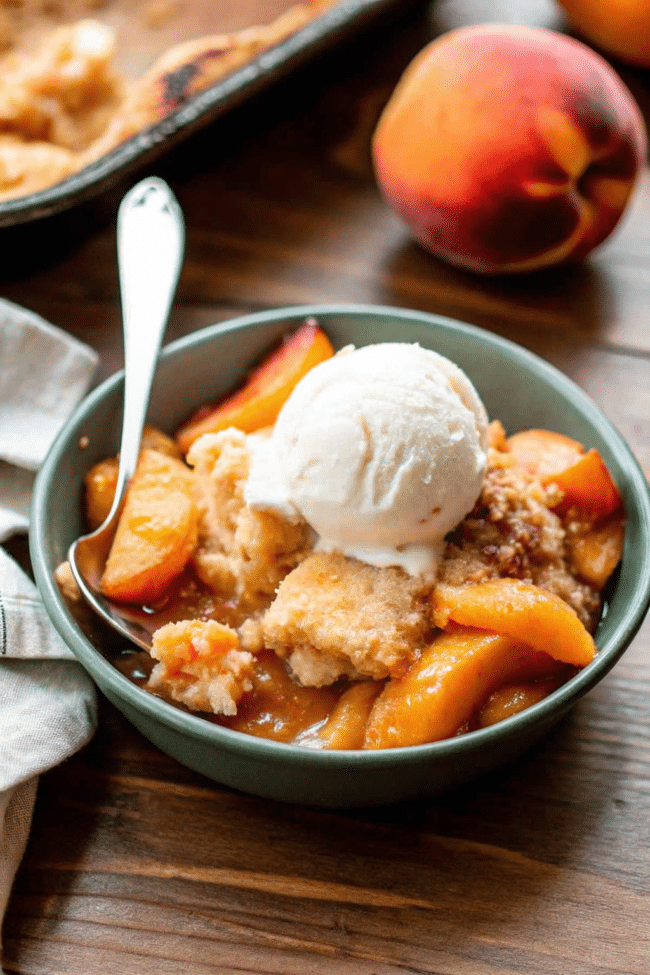 The peaches turn soft and jammy, while the topping bakes into a golden, tender layer that soaks up all that syrupy goodness. Every spoonful feels warm, comforting, and deeply satisfying.