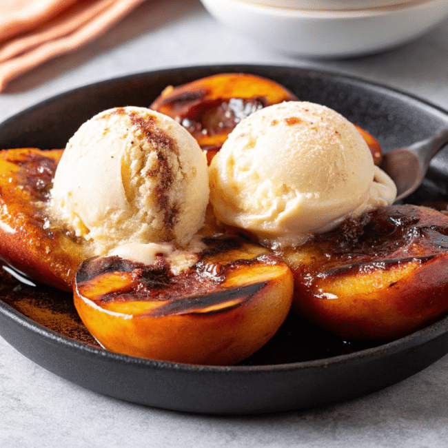 This Grilled Peaches and Ice Cream recipe is effortless yet impressive. Sweet, caramelized peaches with cold ice cream create a perfect summer dessert I’ll keep coming back to.