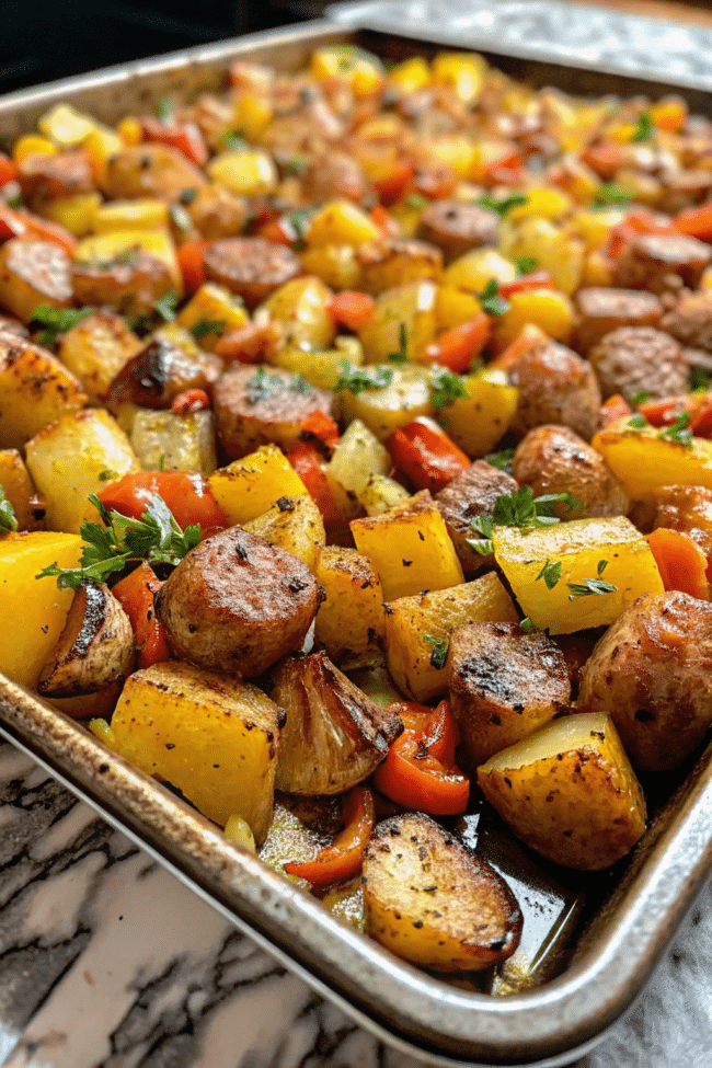 As it baked, the potatoes developed a crisp exterior while staying soft inside, and the sausage released its savory juices, bringing everything together with rich, layered flavor.