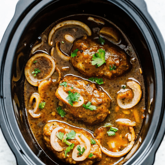 Slow cooker salisbury steak is one of those comforting meals that slowly fills the kitchen with a deep, savory aroma while it cooks.